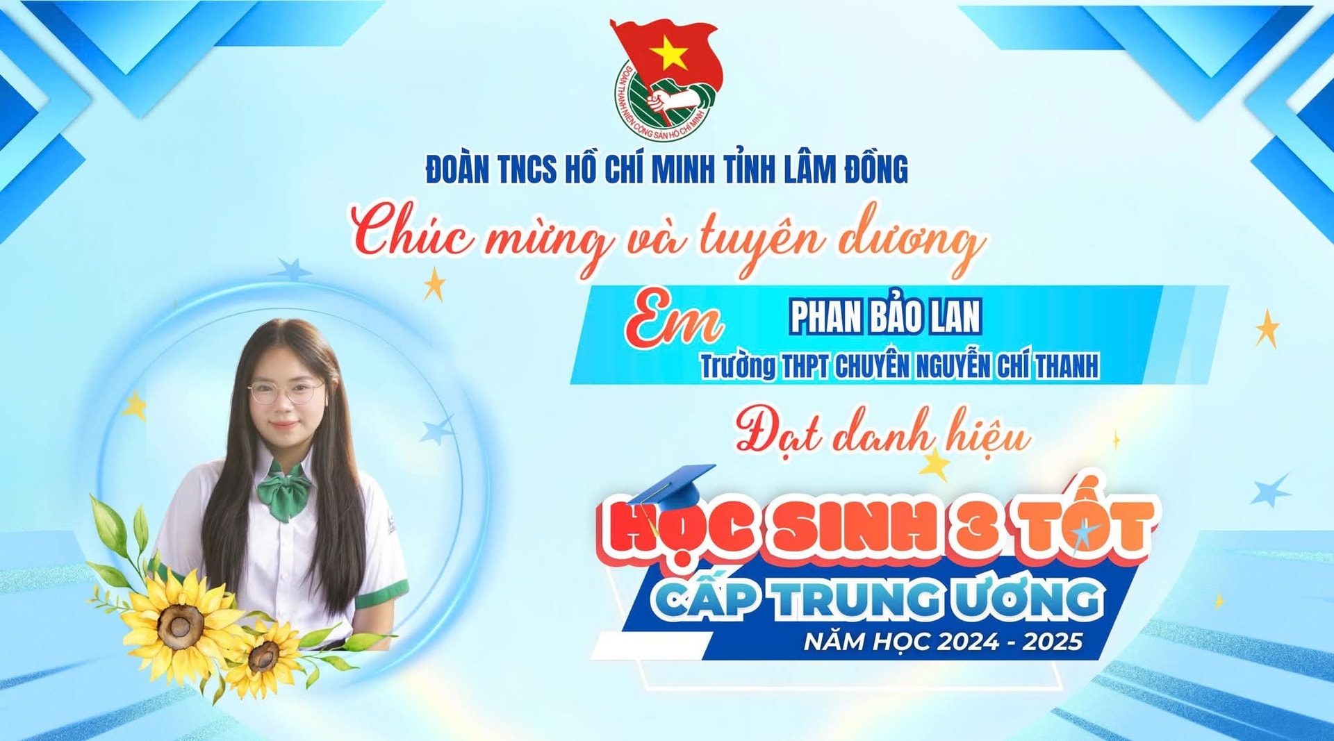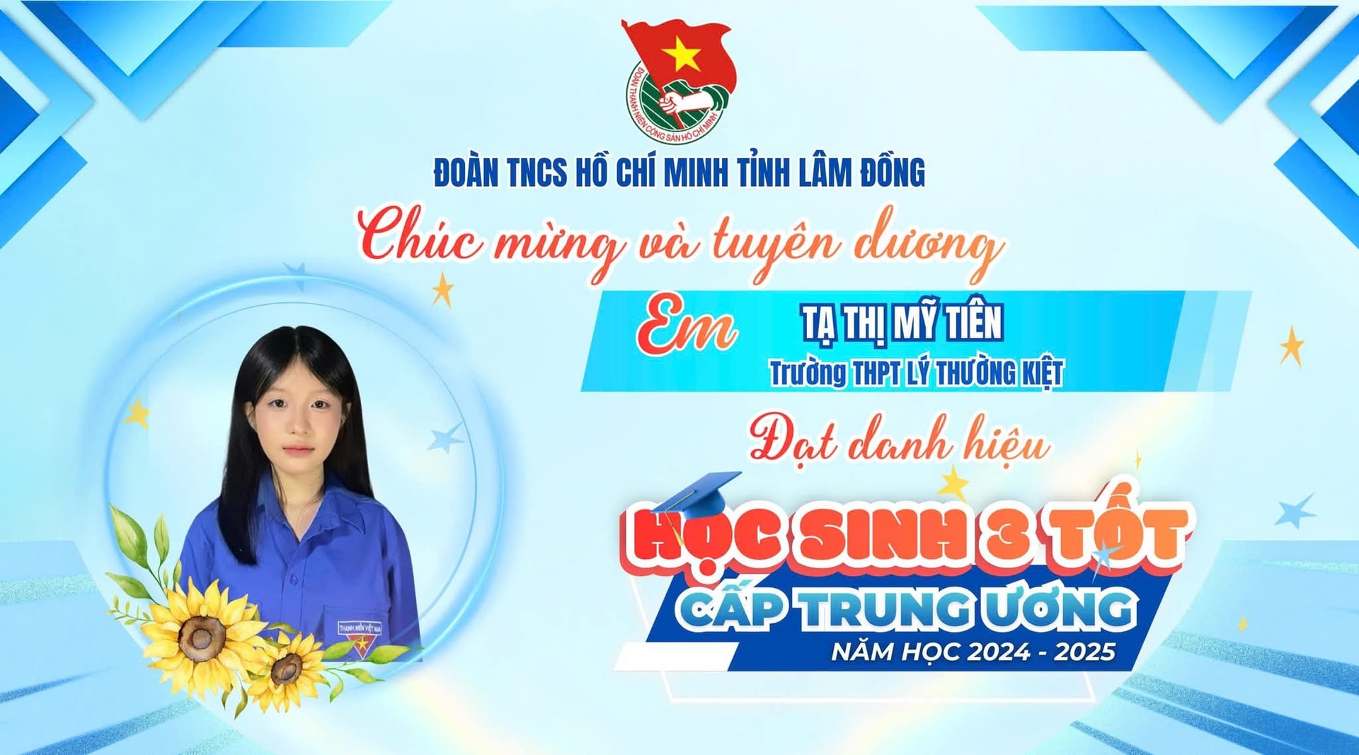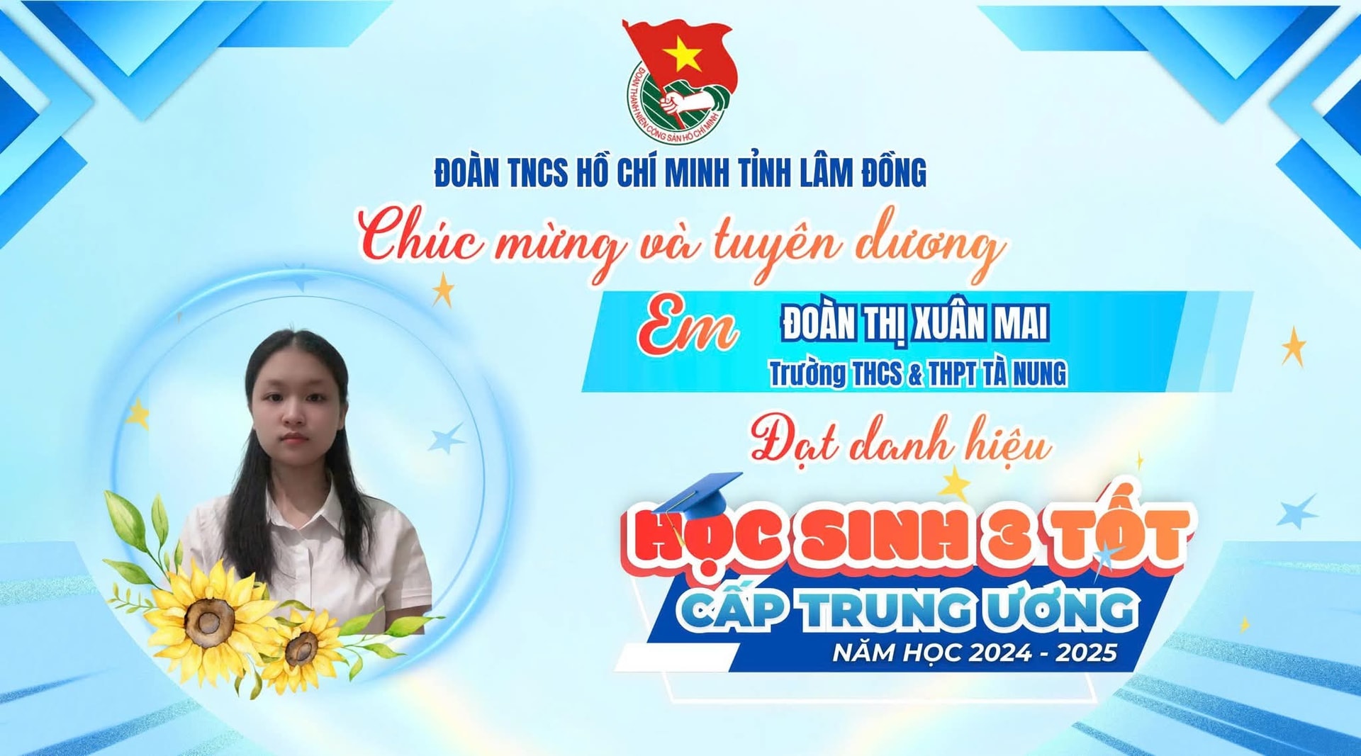 7 học sinh tỉnh Lâm Đồng được Trung ương Đoàn TNCS Hồ Chí Minh công nhận danh hiệu “Học sinh 3 tốt” và “Học sinh 3 rèn luyện” trong năm học 2024 – 2025.